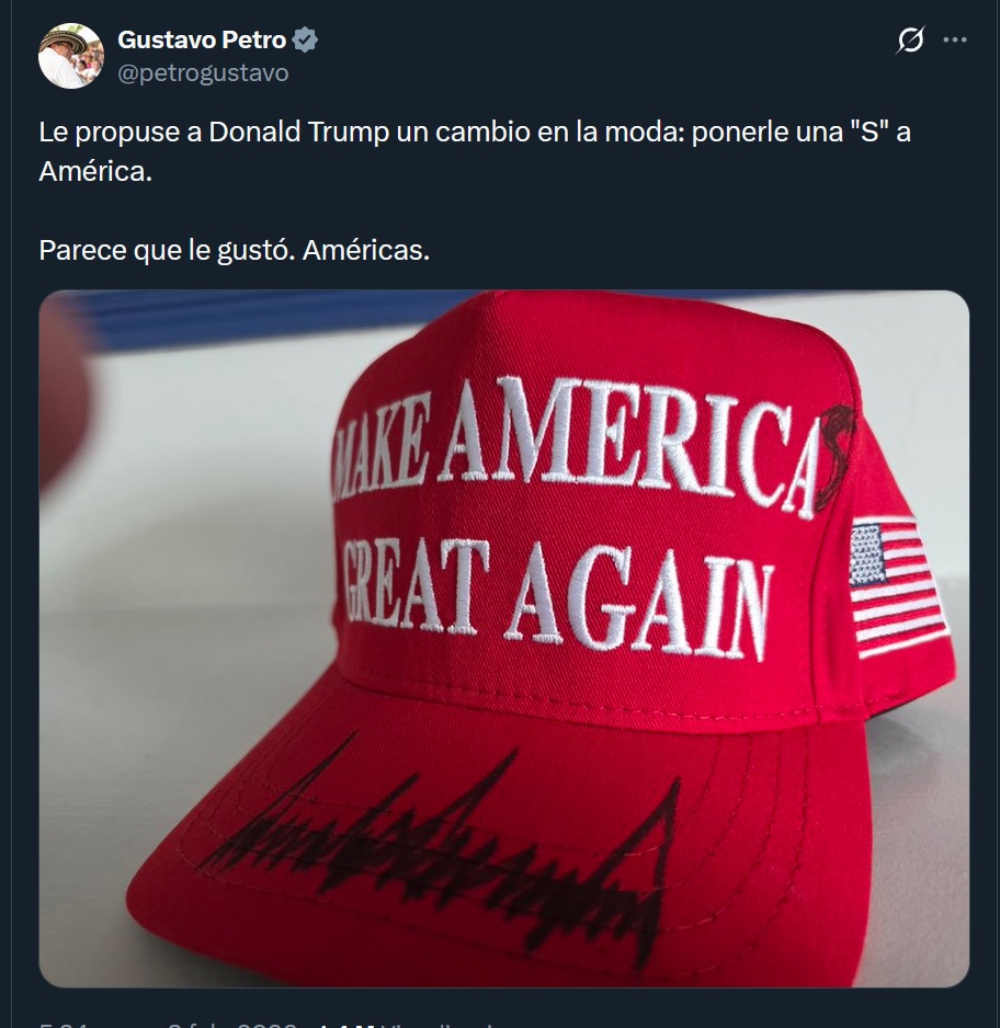 Cada uno de los obsequios incluía tarjetas personalizadas dirigidas a Trump y a miembros clave de su administración, como el vicepresidente J. D. Vance y el secretario de Estado Marco Rubio. Además, Petro relató que se permitió una sutil broma al sugerir agregar una “s” a la palabra América en el lema “Make America Great Again”, para incluir a todos los países del continente.